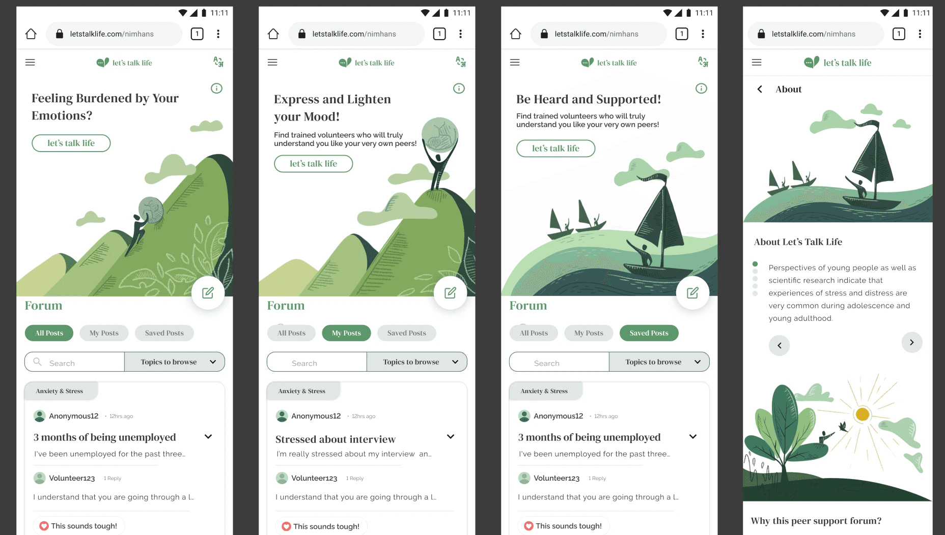 The existing Let’s Talk Life website was struggling with low engagement and poor user experience, making it difficult for users to access mental health resources effectively. NIMHANS Bangalore needed a redesign to increase traction, enhance usability, and improve accessibility.